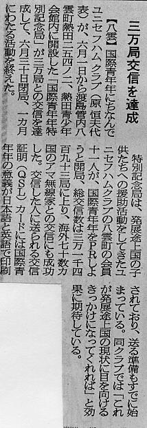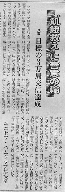 「交信目標は、3万局です。」などと大洞を吹いていました。30日間に3万局、つまり1日1,000局です。はじめはとてもこんなに出来るわけがないと思っていたのですが、開局した6月1日の日で4,000局を突破したではありませんか。特に21Mhz、28Mhz、50Mhzが夜間まで全国がオープンして、どのバンドも山のように呼ばれて、オペレーターの皆さんは、食事をとるひまさえないありさまでした。